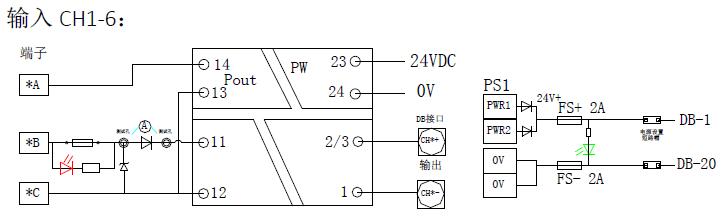 原理圖: 接線圖: 電源設(shè)置: 每個DB 口都含有2 芯電源線,用于向PLC 模塊供電。這些電源由電源輸出設(shè)置的短路帽進行控制,每個短路帽對應(yīng)一根線,送電前應(yīng)根據(jù)需要進行設(shè)置。電源指示在保險下方,電源接反或保險燒斷時電源燈不亮。